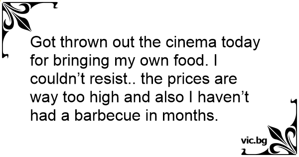 Got thrown out the cinema today for bringing my own food. I couldn’t resist.. the prices are way too high and also I haven’t had a barbecue in months.