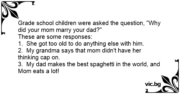 Grade school children were asked the question, "Why did your mom marry your dad?"