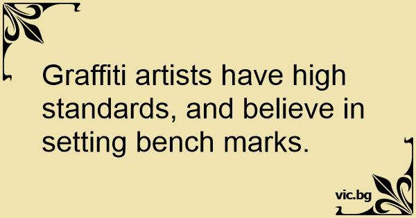 Graffiti artists have high standards, and believe in setting bench marks.