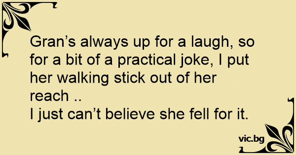 Gran’s always up for a laugh, so for a bit of a practical joke, I put her walking stick out of her reach ..