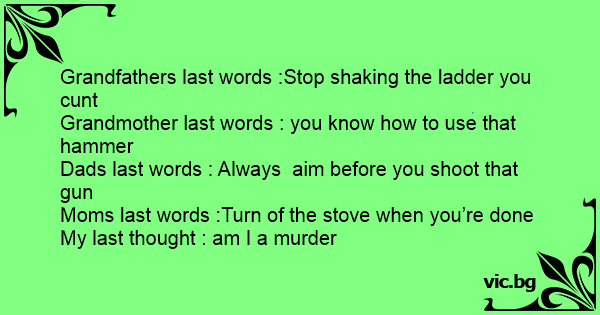 Grandfathers last words :Stop shaking the ladder you cunt