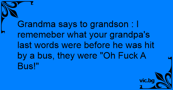 Grandma says to grandson : I rememeber what your grandpa's last words were before he was hit by a bus, they were "Oh Fuск A Bus!"
