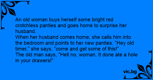 An old woman buys herself some bright red crotchless раnтiеs and goes home to surprise her husband.