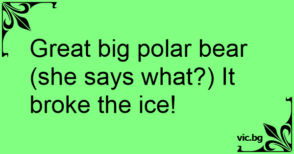 Great big polar bear(she says what?) It broke the ice!