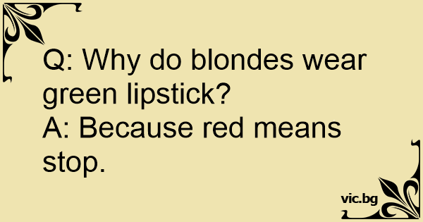 Hvorfor bruger blondiner grøn læbestift? – Rød betyder stop.