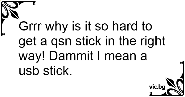 Grrr why is it so hard to get a qsn stick in the right way! Dаммiт I mean a usb stick.