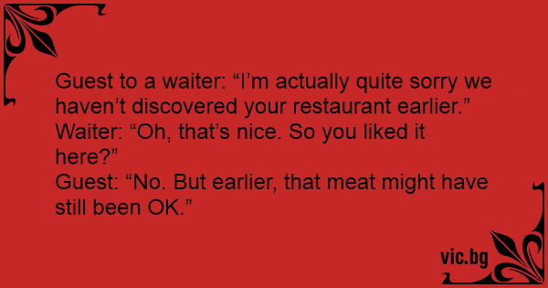 Waiter: “Oh, that’s nice. So you liked it here?”
