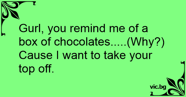 Gurl, you remind me of a box of chocolates.....(Why?) Cause I want to take your top off.