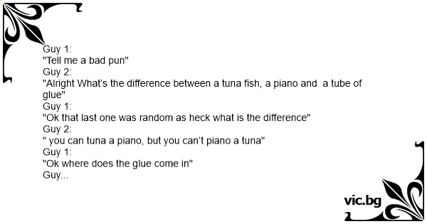"Alright What’s the difference between a tuna fish, a piano and a tube of glue"