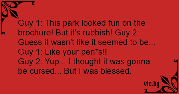 Guy 1: This park looked fun on the brochure! But it's ruввish! Guy 2: Guess it wasn't like it seemed to be...