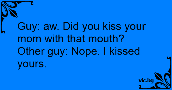 Guy: aw. Did you kiss your mom with that mouth?