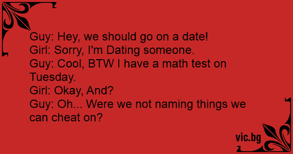 Guy: Oh... Were we not naming things we can cheat on?
