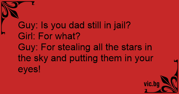 Guy: For stealing all the stars in the sky and putting them in your eyes!
