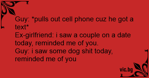 Ex-girlfriend: i saw a couple on a date today, reminded me of you.