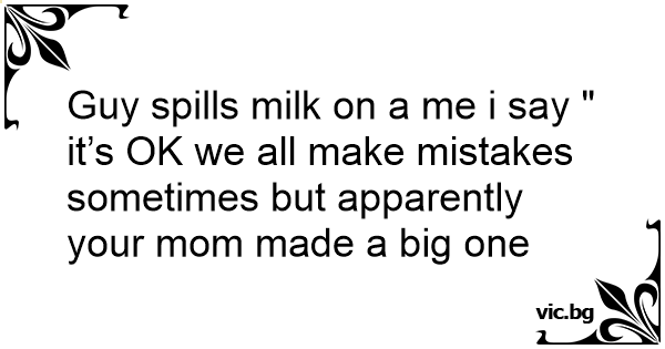 Guy spills milk on a me i say " it’s OK we all make mistakes sometimes but apparently your mom made a big one