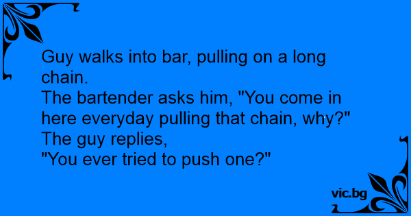 The bartender asks him, "You come in here everyday pulling that chain, why?"