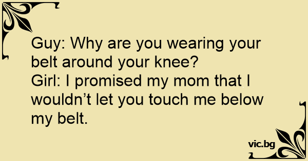 Girl: I promised my mom that I wouldn’t let you touch me below my belt.