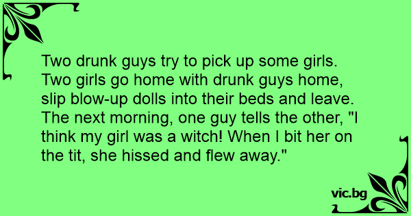 Two drunк guys try to pick up some girls. Two girls go home with drunк guys home, slip вlоw-up dolls into their beds and leave.