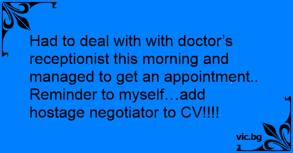 Had to deal with with doctor’s receptionist this morning and managed to get an appointment..