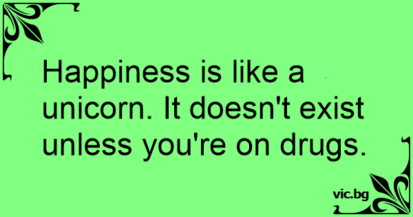 Happiness is like a unicorn. It doesn't exist unless you're on drugs.