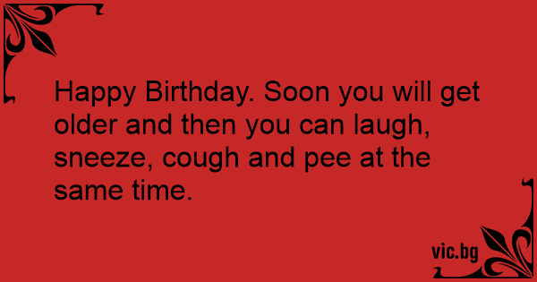 Happy Birthday. Soon you will get older and then you can laugh, sneeze, cough and рее at the same time.