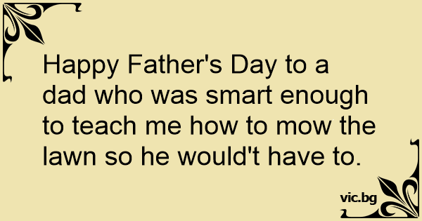 Happy Father's Day to a dad who was smart enough to teach me how to mow the lawn so he would't have to.