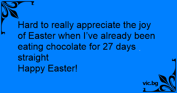 Hard to really appreciate the joy of Easter when I’ve already been eating chocolate for 27 days straight