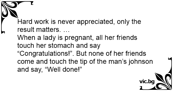 Hard work is never appreciated, only the result matters. …<br />When a lady is pregnant, all her friends touch her stomach and say “Congratulations!”. But none of her friends come and touch the tip of the man’s johnson and say, “Well done!”