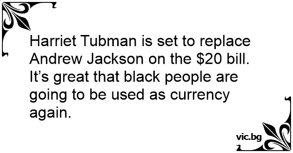 Harriet Tubman is set to replace Andrew Jackson on the $20 bill. It’s great that black people are going to be used as currency again.