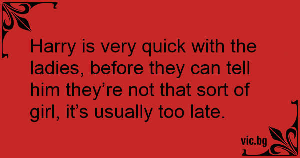 Harry is very quick with the ladies, before they can tell him they’re not that sort of girl, it’s usually too late.