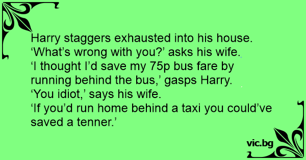 ‘I thought I’d save my 75p bus fare by running behind the bus,’ gasps Harry.