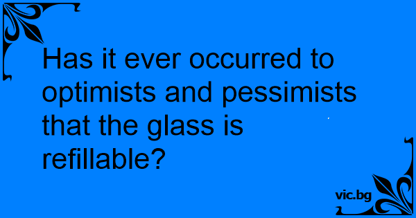 Has it ever occurred to optimists and pessimists that the glass is refillable?