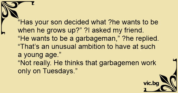 “He wants to be a garbageman,” ?he replied.