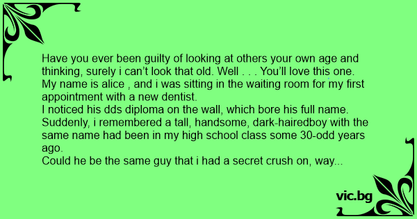 I noticed his dds diploma on the wall, which bore his full name. Suddenly, i remembered a tall, handsome, dark-hairedboy with the same name had been in my high school class some 30-odd years ago.