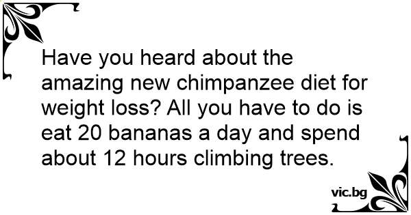Have you heard about the amazing new chimpanzee diet for weight loss? All you have to do is eat 20 bananas a day and spend about 12 hours climbing trees.