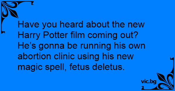 Have you heard about the new Harry Potter film coming out? He’s gonna be running his own abortion clinic using his new magic spell, fetus deletus.
