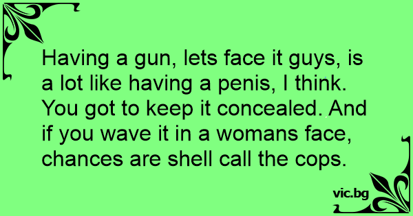Having a gun, lets face it guys, is a lot like having a реnis, I think. You got to keep it concealed. And if you wave it in a womans face, chances are shell call the cops.