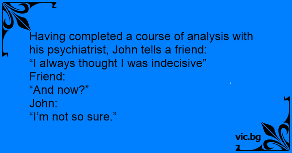 Having completed a course of analysis with his psychiatrist, John tells a friend:
