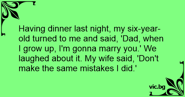 Having dinner last night, my six-year-old turned to me and said, 'Dad, when I grow up, I'm gonna marry you.' We laughed about it. My wife said, 'Don't make the same mistakes I did.'