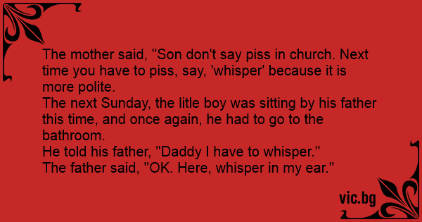 The mother said, ''Son don't say рiss in church. Next time you have to рiss, say, 'whisper' because it is more polite.