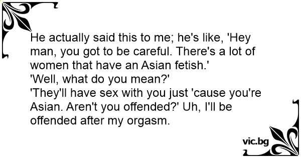 He actually said this to me; he's like, 'Hey man, you got to be careful. There's a lot of women that have an Asian fetish.'