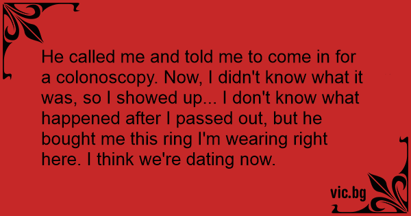 He called me and told me to come in for a colonoscopy. Now, I didn't know what it was, so I showed up... I don't know what happened after I passed out, but he bought me this ring I'm wearing right here. I think we're dating now.