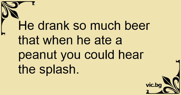He drank so much вееr that when he ate a peanut you could hear the splash.