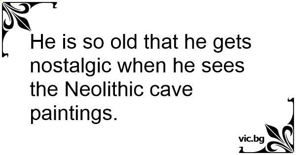 He is so old that he gets nostalgic when he sees the Neolithic cave paintings.