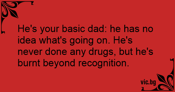 He's your basic dad: he has no idea what's going on. He's never done any drugs, but he's burnt beyond recognition.