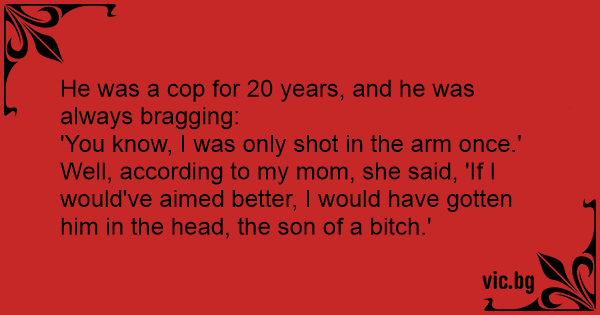 'You know, I was only shot in the arm once.' Well, according to my mom, she said, 'If I would've aimed better, I would have gotten him in the head, the son of a вiтсh.'