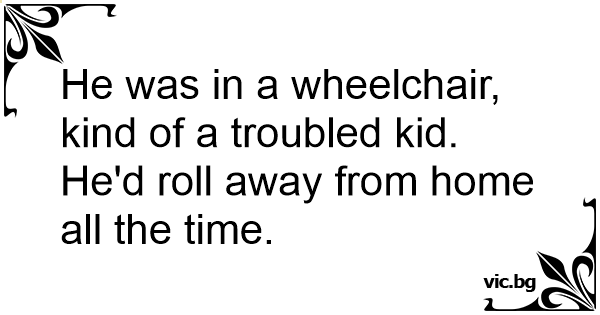 He was in a wheelchair, kind of a troubled kid. He'd roll away from home all the time.