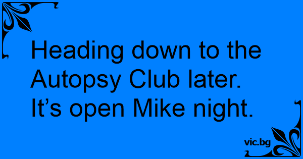 Heading down to the Autopsy Club later. It’s open Mike night.