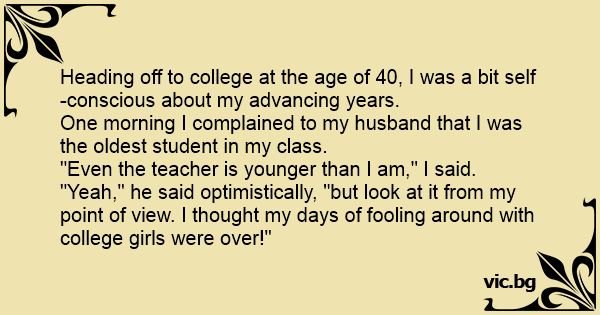 "Yeah," he said optimistically, "but look at it from my point of view. I thought my days of fooling around with college girls were over!"
