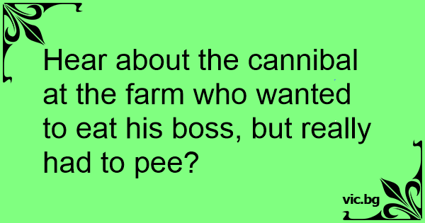 Hear about the cannibal at the farm who wanted to eat his boss, but really had to рее?